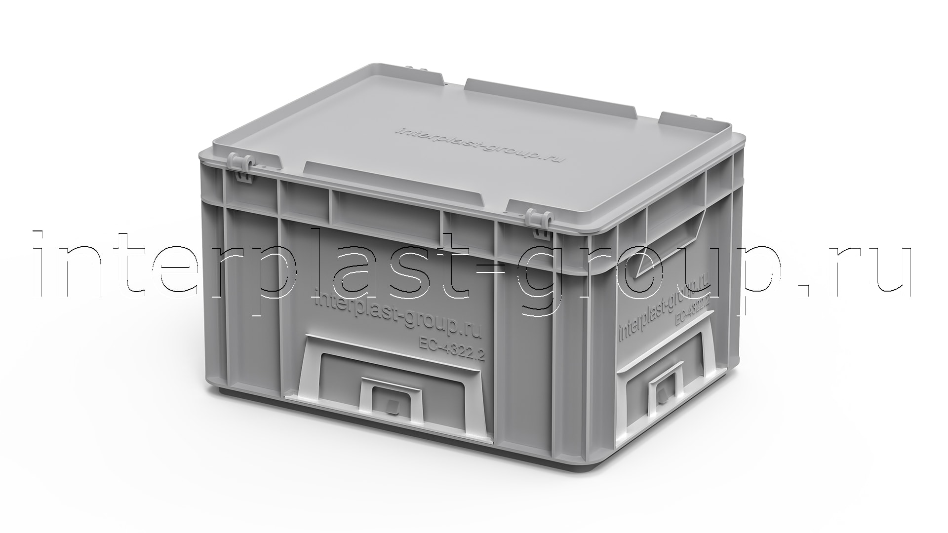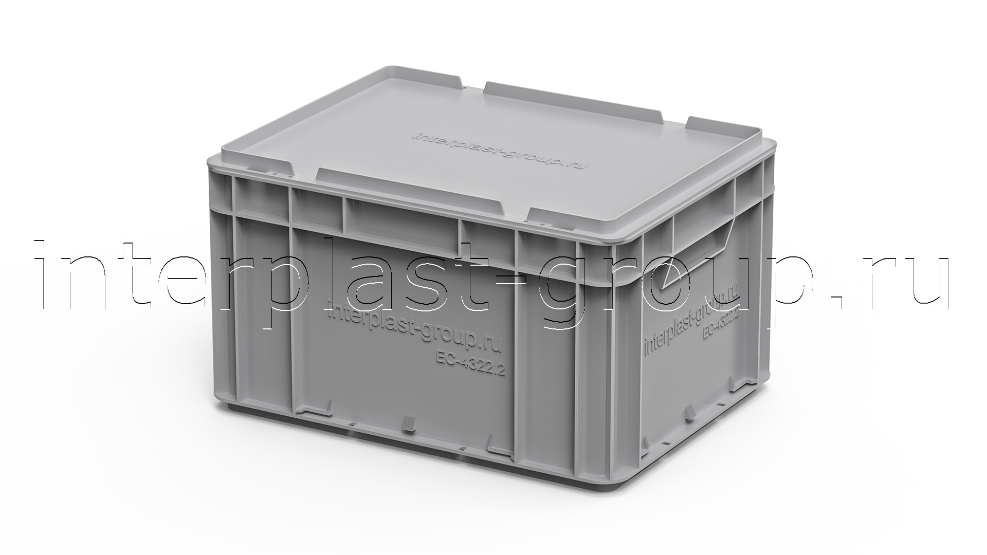 Евроконтейнер закрытые ручки/сплошное дно (серый), 400x300x220 мм