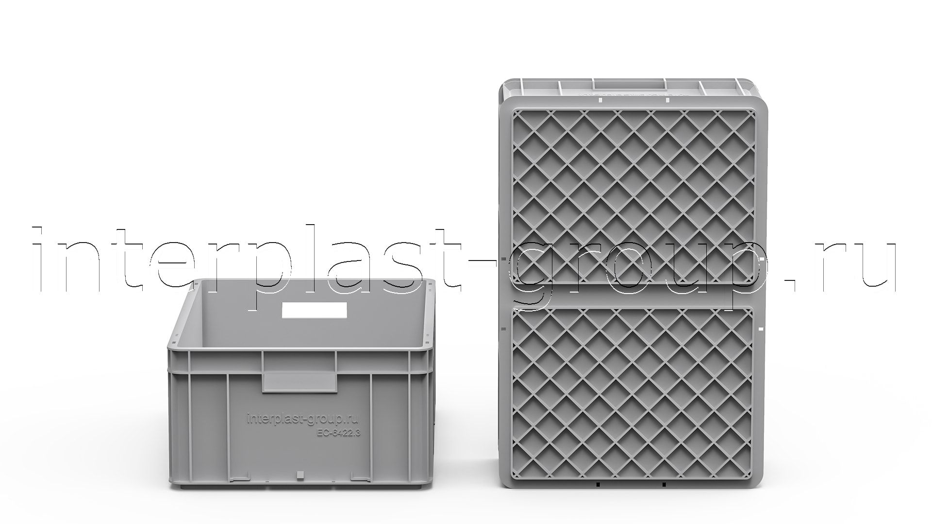 Евроконтейнер открытые ручки/усиленное дно (серый), 600x400x220 мм