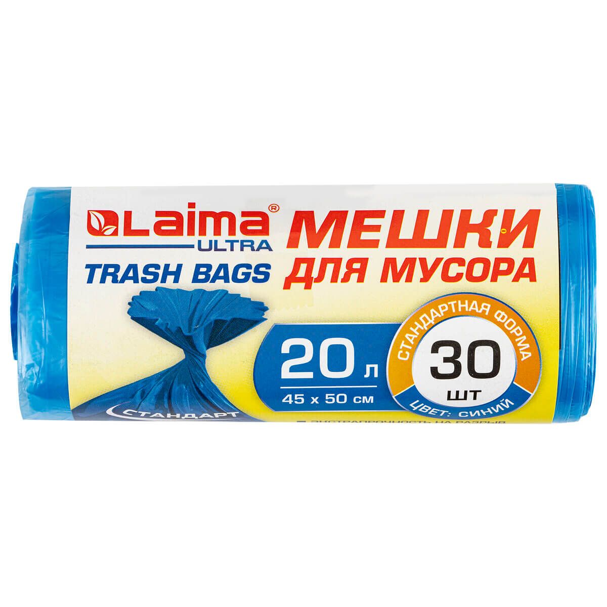 Мешки для мусора 20 л, синие, в рулоне 30 шт., ПНД, 8 мкм, 500х450 мм, LAIMA, 607682 в Рыбинске