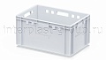 Ящик для мяса Е3 это третий по размеру в линейке мясных ящиков. Разработан специально для использования в мясной промышленности. Отлично штабелируется и собирается в единый сет со всеми ящиками серии. Изготовлен из первичного полиэтилена, и адаптирован для хранения в холодильных и морозильных камерах.