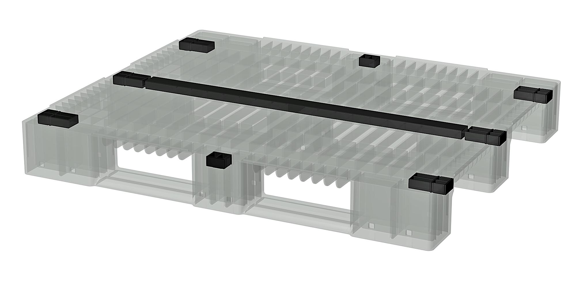 Многофункциональный поддон, производимый по технологии литья под высоким давлением с включением вспенивающего реагента. Разработан для хранения и перевозки тяжелых грузов.