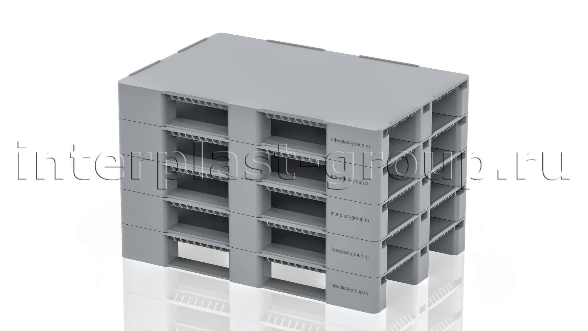 Многофункциональный поддон, производимый по технологии литья под высоким давлением с включением вспенивающего реагента. Разработан для хранения и перевозки тяжелых грузов.