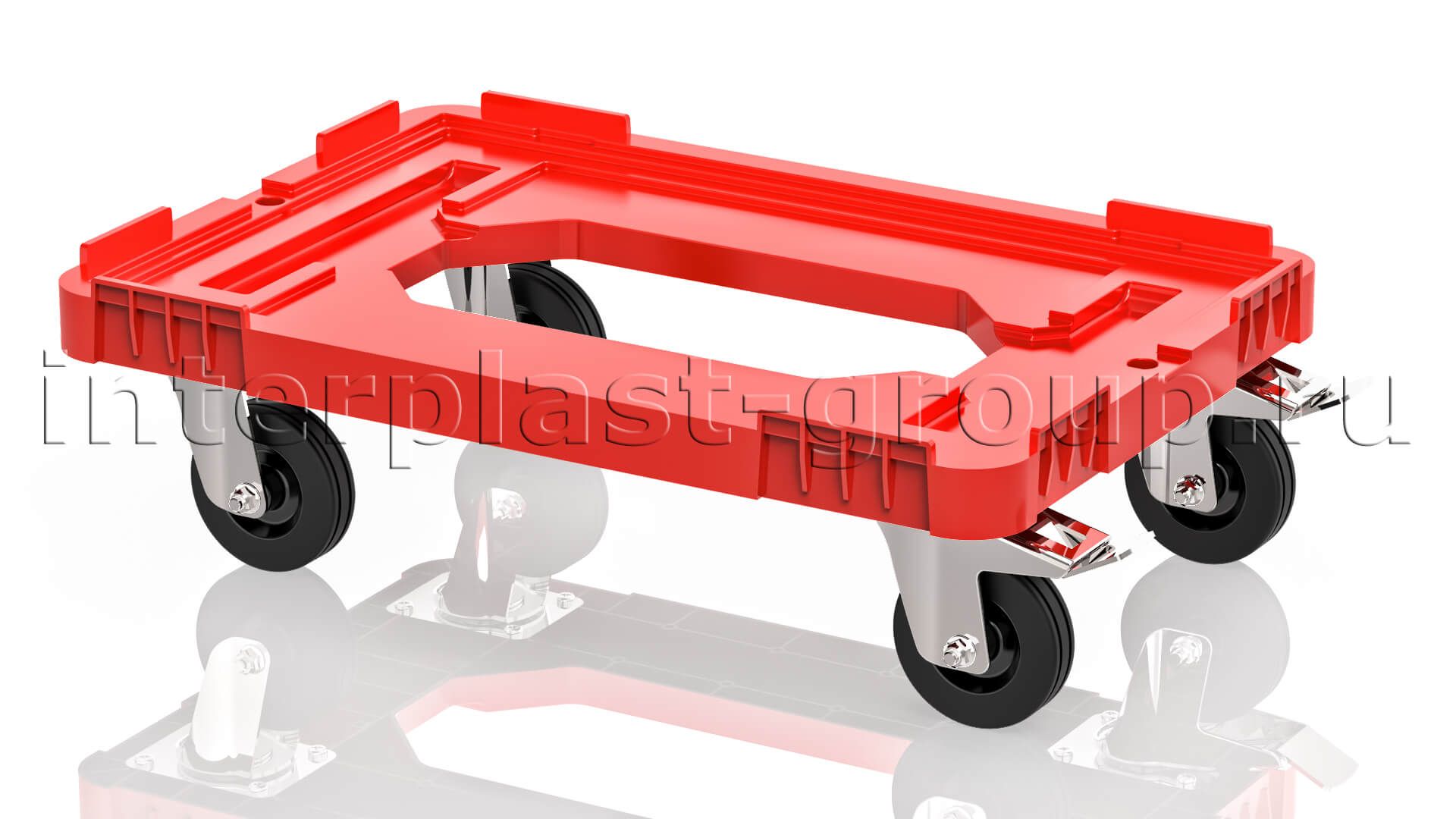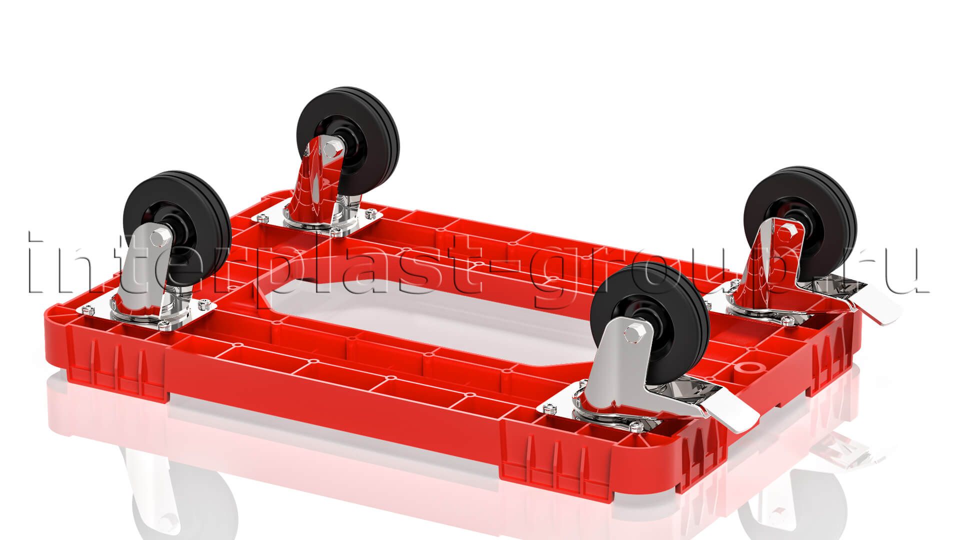 Тележка пластиковая с отверстием 2 колеса с тормозом красная в Рыбинске