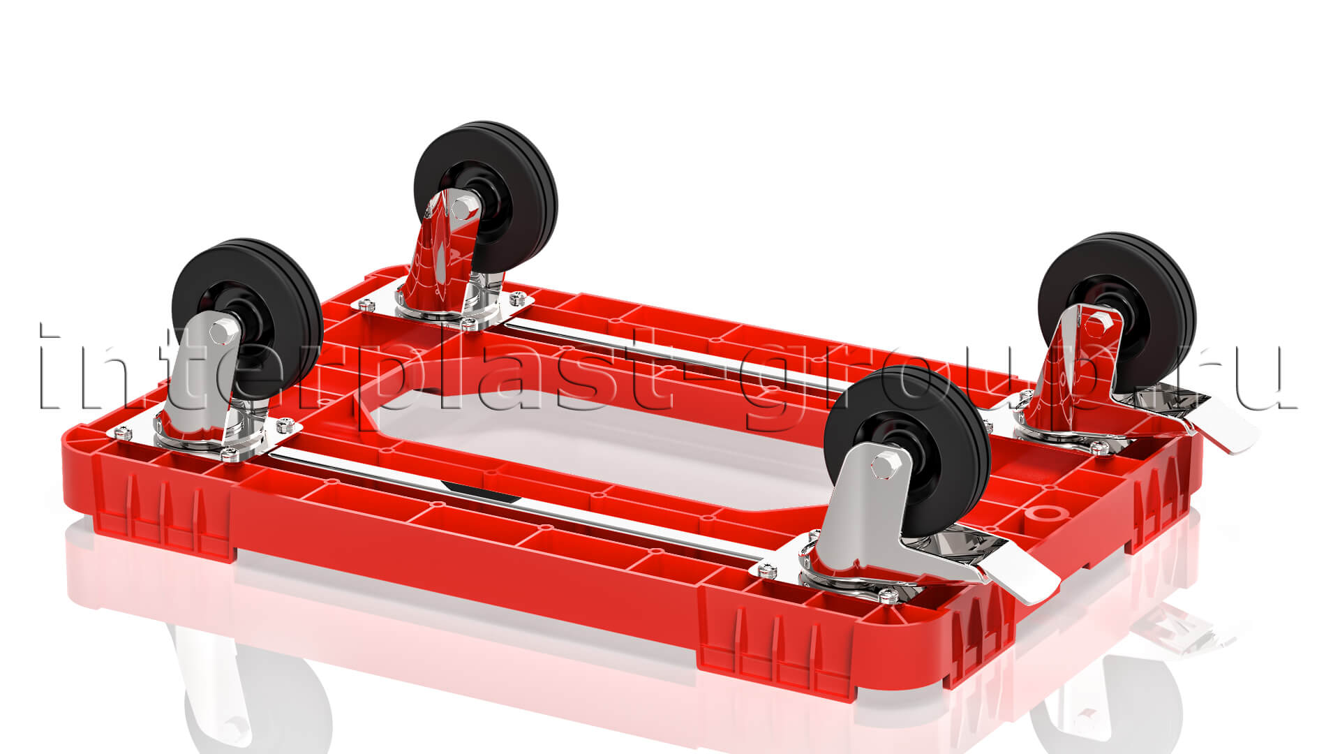 Тележка пластиковая с отверстием 2 колеса с тормозом усиленная красная в Рыбинске