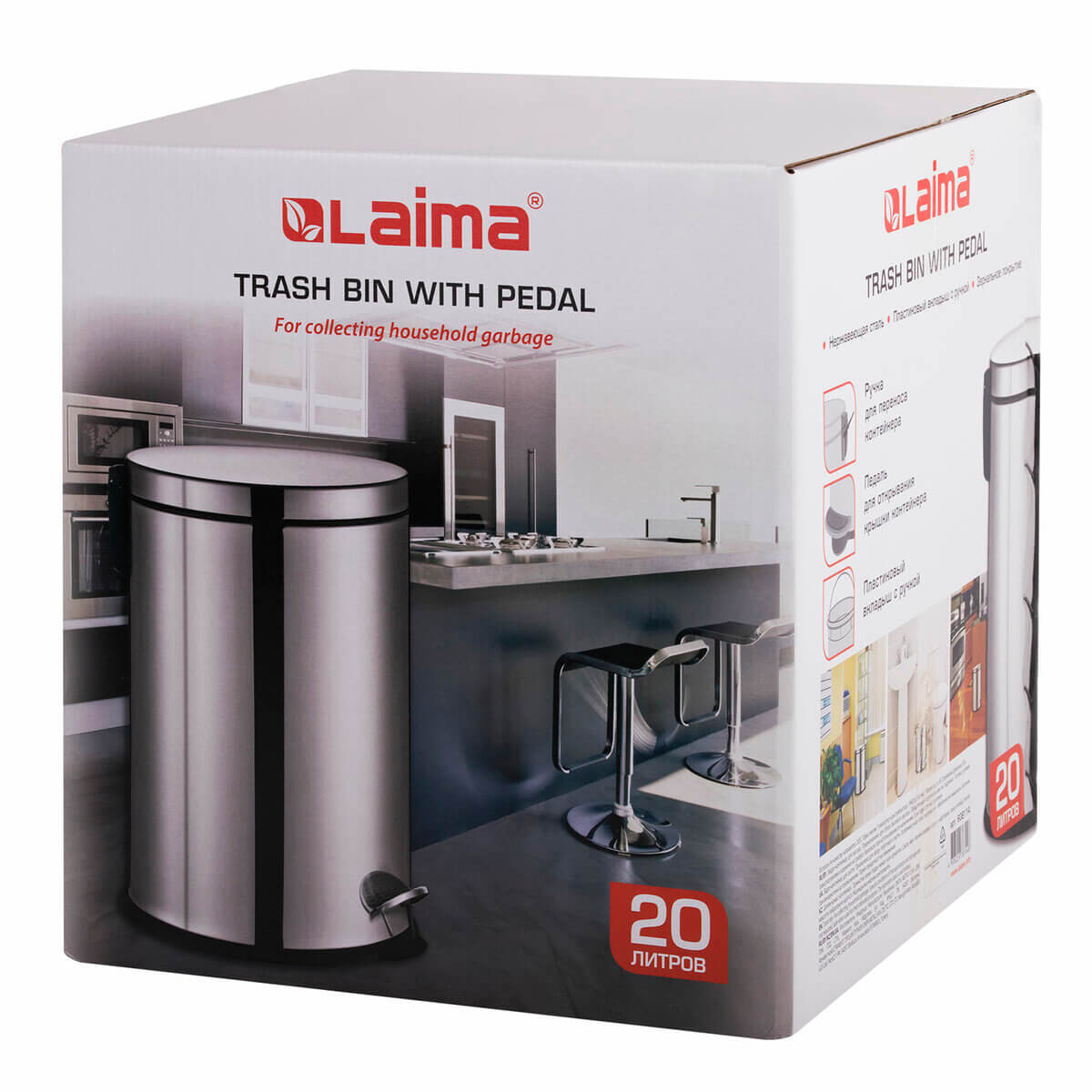 Ведро-контейнер для мусора урна с педалью LAIMA Classic Plus, 20 л, зеркальное в Рыбинске
